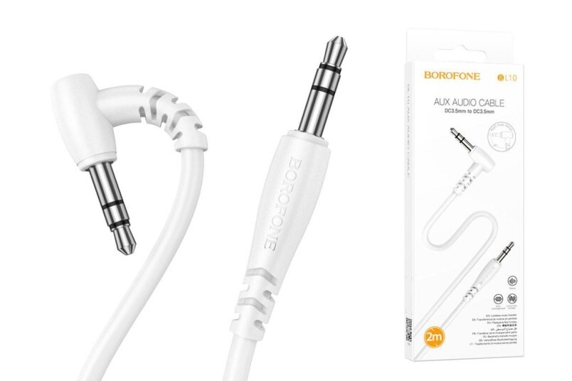 Аудиокабель AUX для подключения к автомагнитоле с разъемом 3,5 jack 2 м, угловой