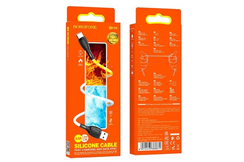 Дата-кабель универ. USB Type-C 1 м, 3А, силикон черный