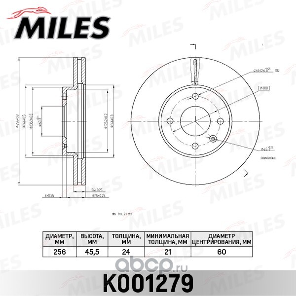 Диск тормозной передний Chevrolet Aveo T300 Cobalt (256мм)