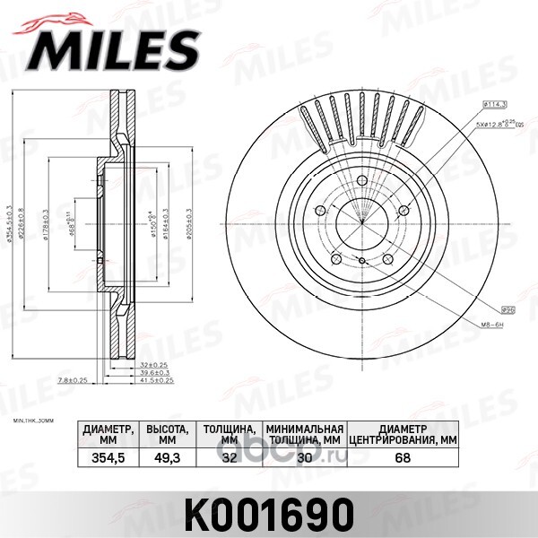 Диск тормозной передний Infinity FX Q50 Q60 Q70 вент. (d 354мм.)