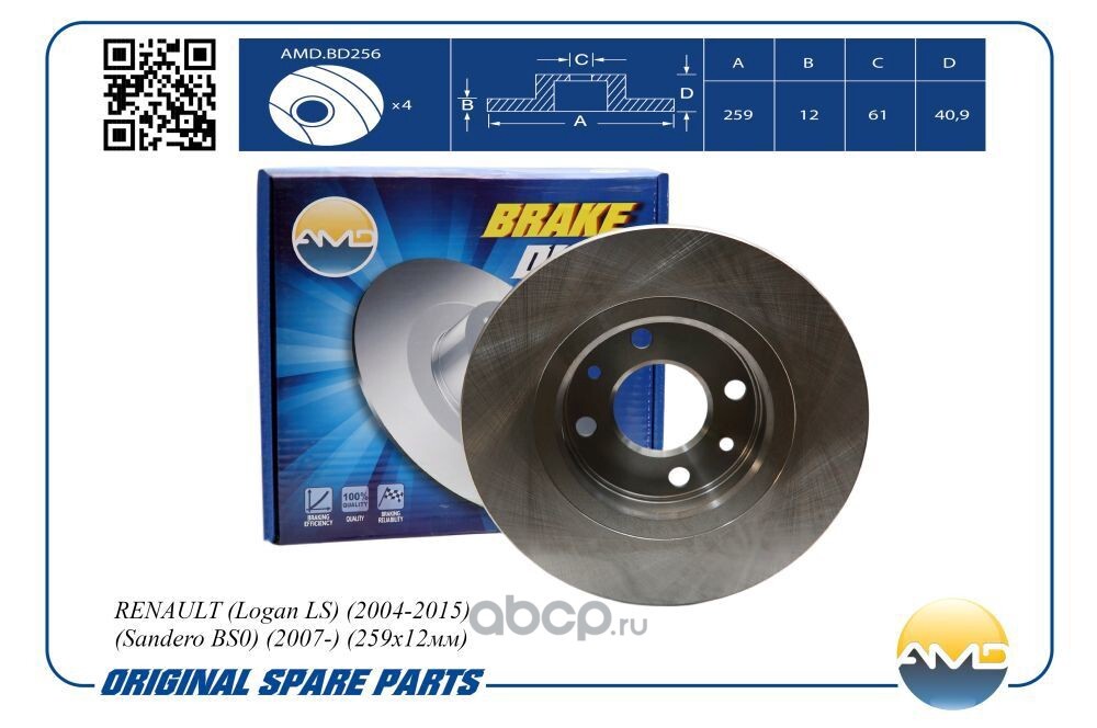 Диск тормозной передний Renault Logan Sandero Megane I Lada Largus невентилир. 259х12 мм.