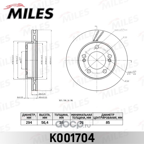 Диск тормозной передний SsangYong Rexton 2.7 Xdi Actyon 2.3 Kyron 2.0 Xdi