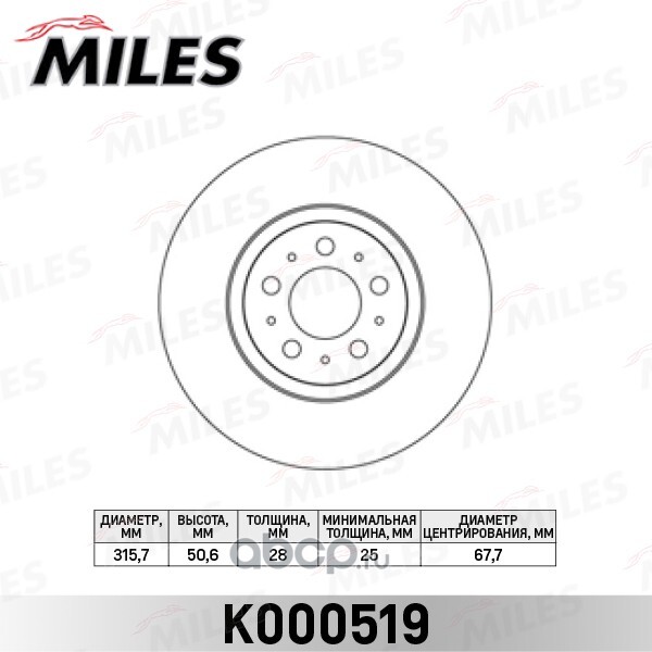 Диск тормозной передний Volvo S60 XC90 (316x28)