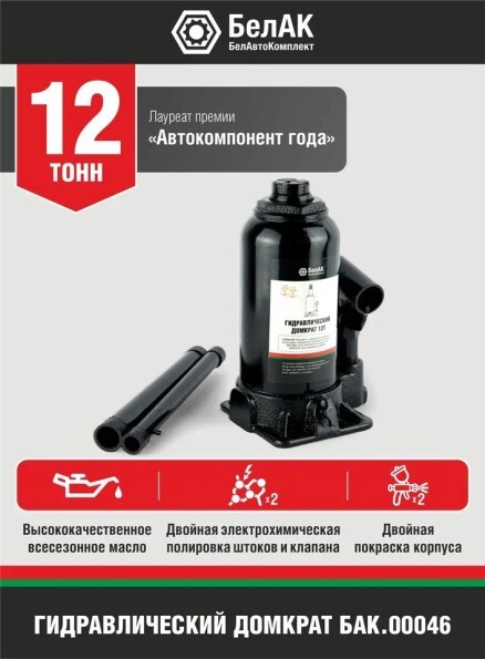 Домкрат гидрав.12 т. выс. 200-385 мм (в коробке)