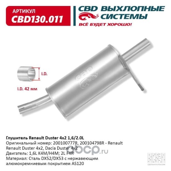 Глушитель Renault Duster 4x2 нерж.