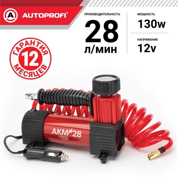 Компрессор поршневой 12В, 28л/мин. до 11 Атм 130Вт