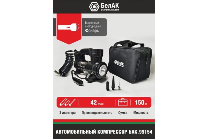 Компрессор поршневой БОРЕЙ-30 12V 42 л/мин с фонарем