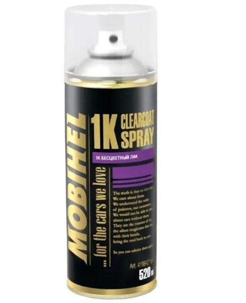Лак спрей 520 мл 1К акриловый бесцветный глянец