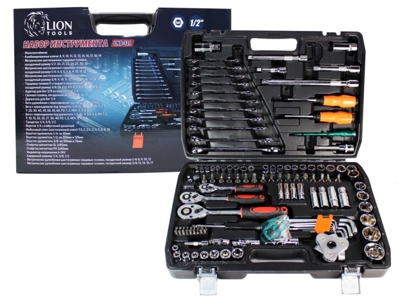 Набор инструментов (121 предм.) 6 гр. 1/4, 3/8, 1/2 DR, 1/2