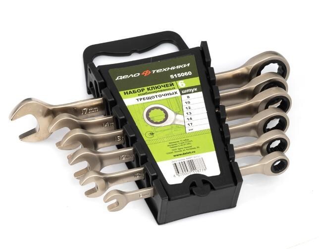 Набор ключей комб. 6 предм. трещот. /рожк.-накидн./