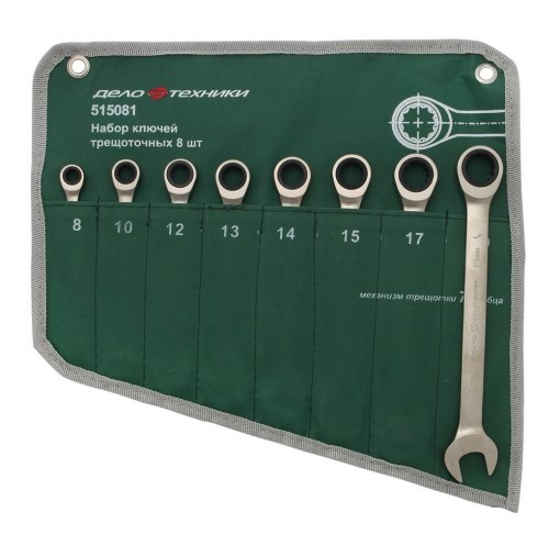 Набор ключей комб. 8 предм. трещот. /рожк.-накидн./ планшет