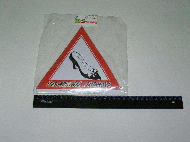 Наклейка Автознак Уважай меня! Туфелька (165*180) наруж. (в уп. 10 шт)