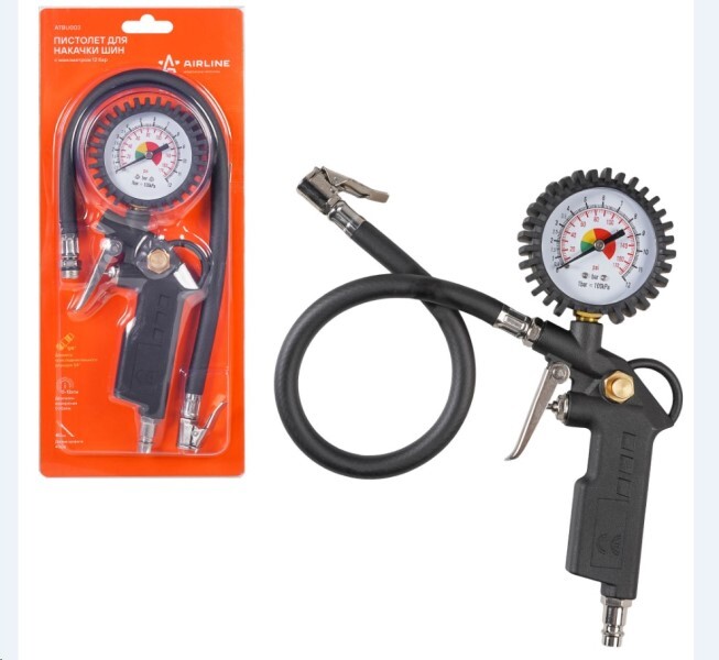 Пистолет для подкачки шин с манометром-шланг 12 Атм.