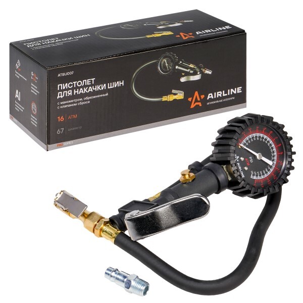 Пистолет для подкачки шин с манометром-шланг 16 Атм.