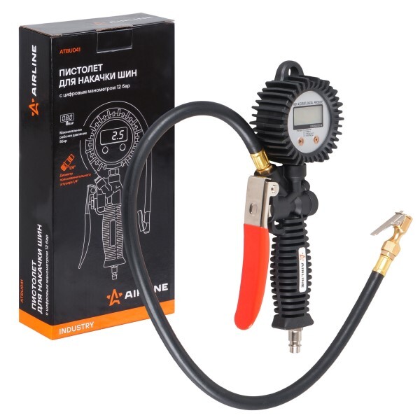 Пистолет для подкачки шин с цифровым манометром-шланг 12 Атм. INDUSTRY