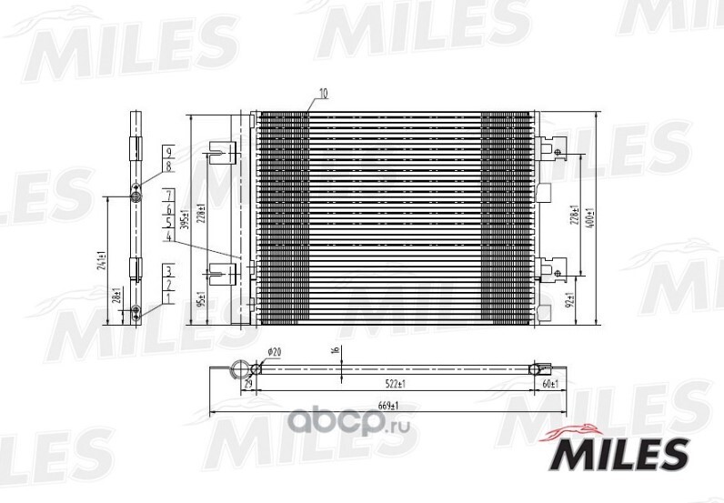 Радиатор кондиционера с ресивером Renault Logan, Lada Largus (08--) 1,4i/1,6i/1,6 16V в сб.