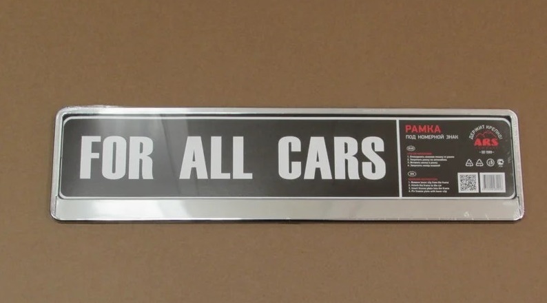 Рамка под номер пластик двусоставная черная, тиснение хром