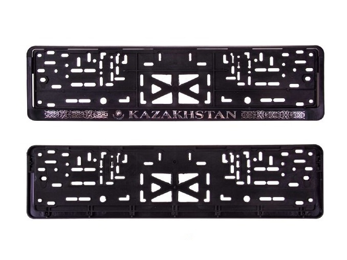 Рамка под номер с защелкой серебро KAZAKHSTAN рельеф