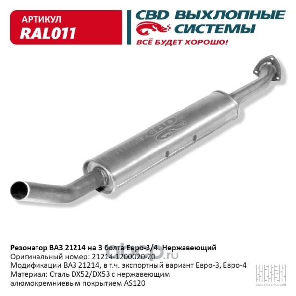 Резонатор /21214/ Евро-4 (креп. на 3 болта) нерж.