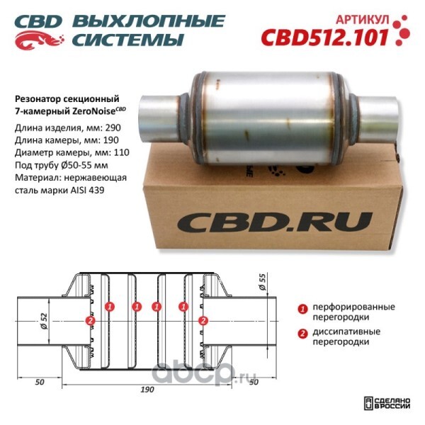 Резонатор универсальный ZeroNoise 11029055 секционный 7-камерный