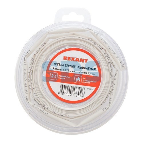 Термоусадка для изоляции проводов 4,0мм/2,0мм L=244 см белая