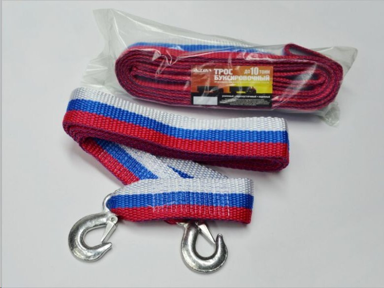 Трос буксир. (10 т) лента 2 крюка /5 м/ усилен.