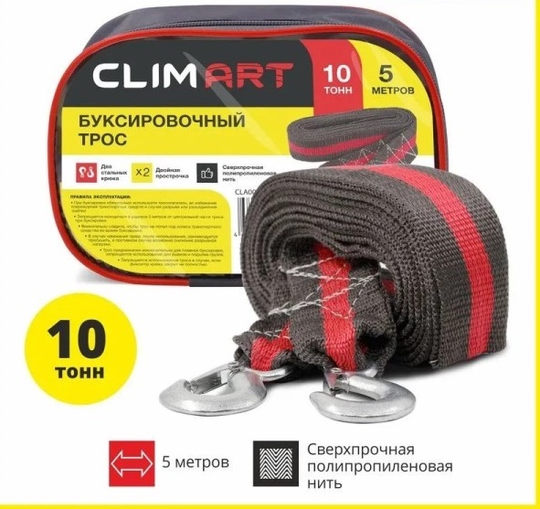 Трос буксир. (10 т) лента 2 крюка /5 м/ в сумке