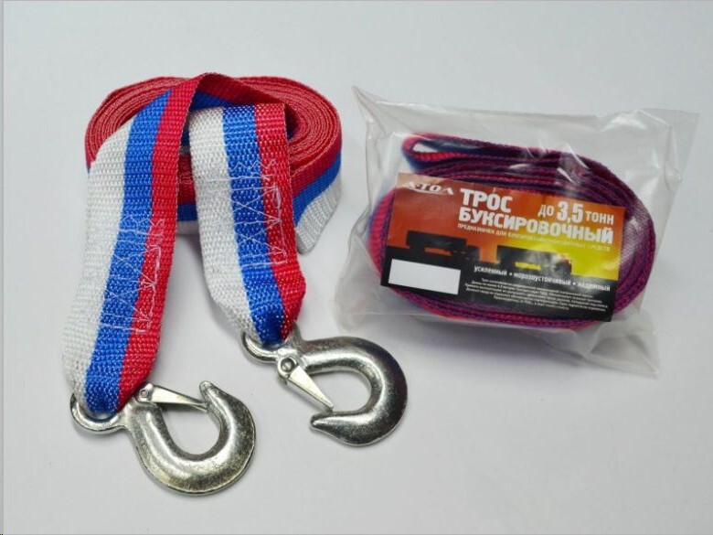 Трос буксир. (3,5 т) лента 2 крюка /4,5 м/ усилен.