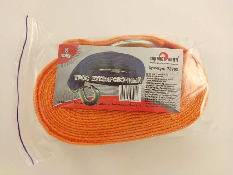 Трос буксир. (5 т) лента 2 крюка /4 м/ пакет