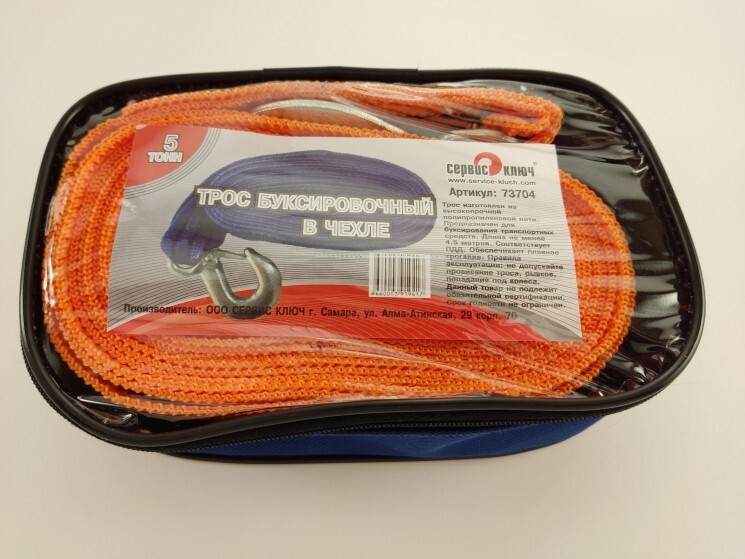 Трос буксир. (5 т) лента 2 крюка /4 м/ сумка