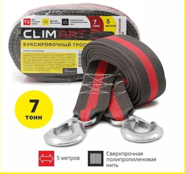 Трос буксир. (7 т) лента 2 крюка /5 м/ с мешком, термоупаковка