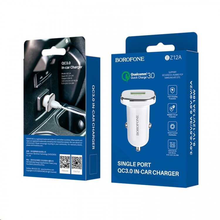 Зарядное устр-во в прикур. 1 USB 3.0A QC3.0 белый